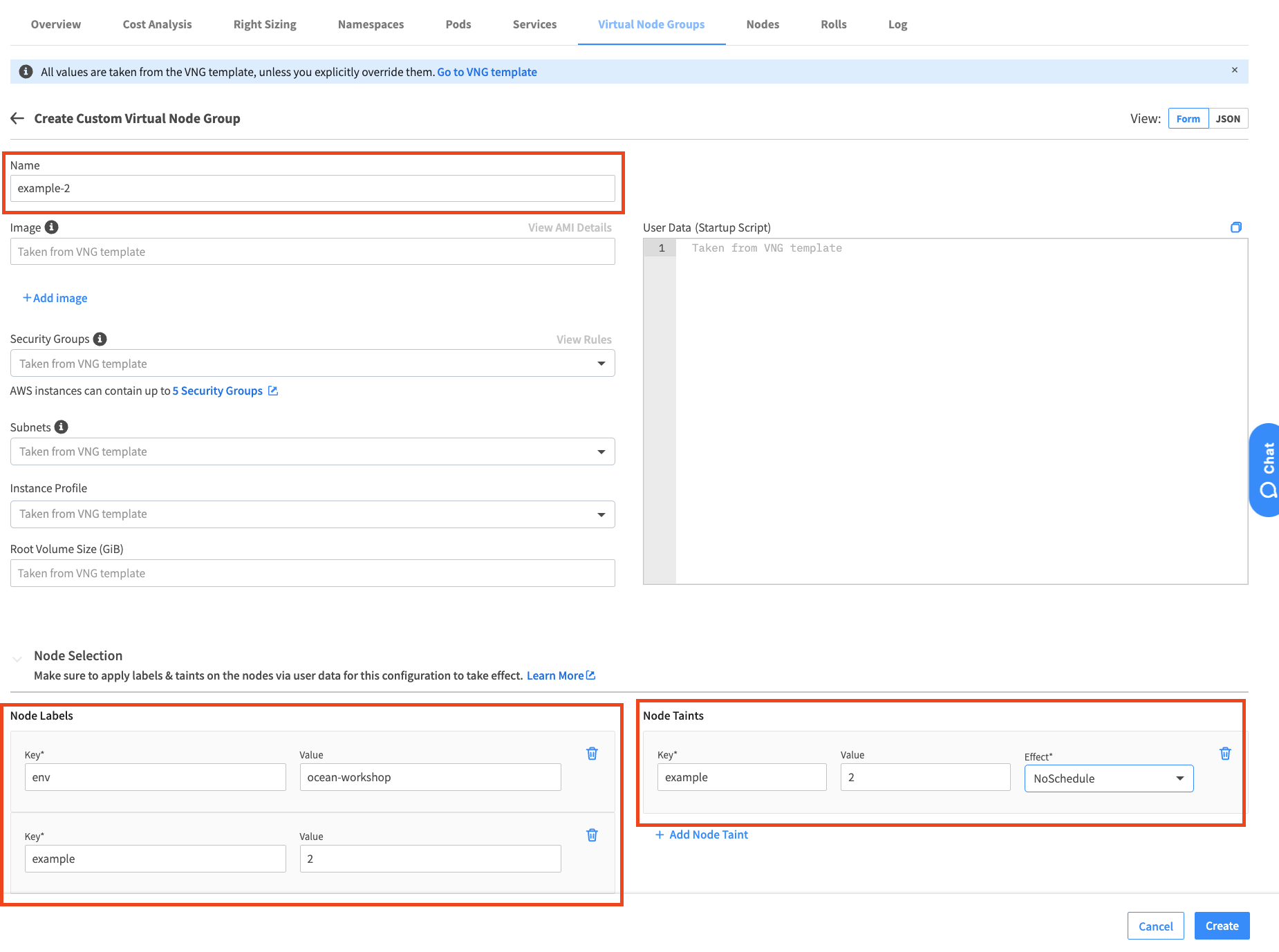 In the Ocean cluster view, enter the Virtual Node Groups tab